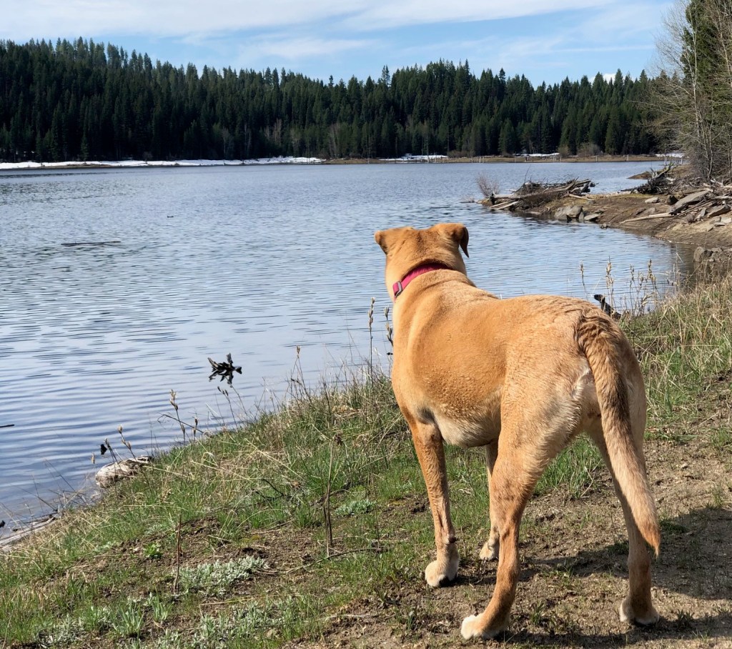 Jug Reservoir on a beautiful Tuesday morning. Craig, Dakota, Ruby, and I soaked in this forest bath.