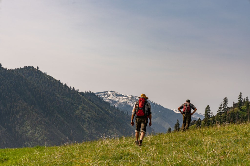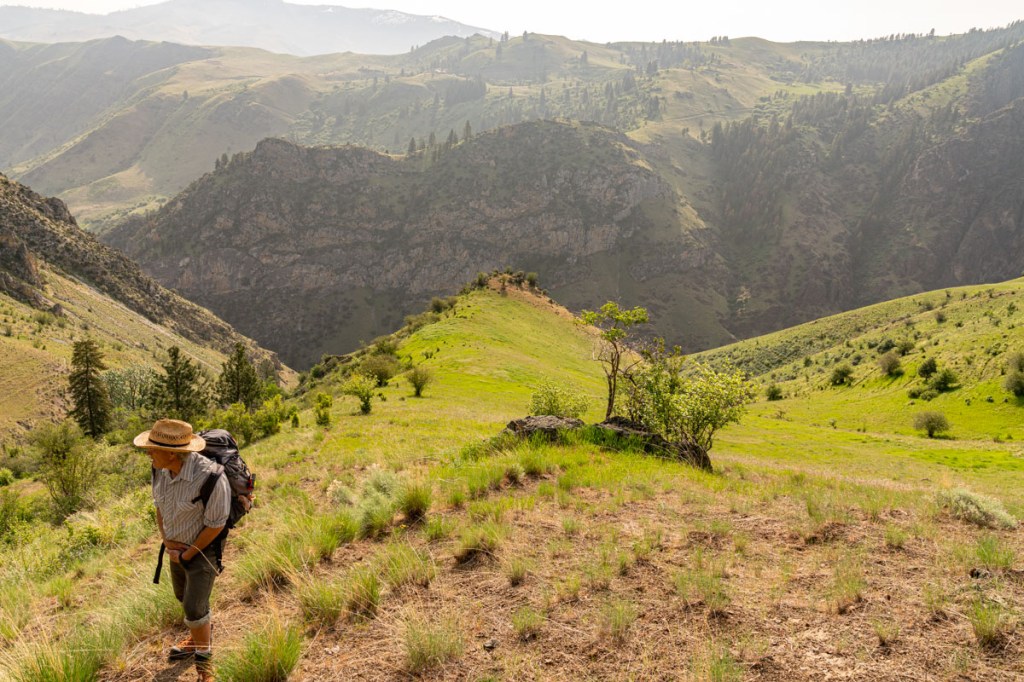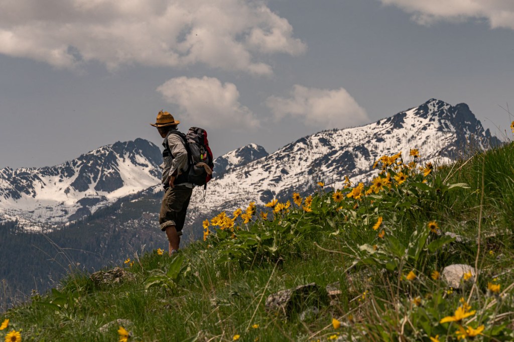 Enjoying a lunch on top of Mt. Sampson, Cannonball Mountain is in the near ground on the far right and the Seven Devils are on the horizon.
