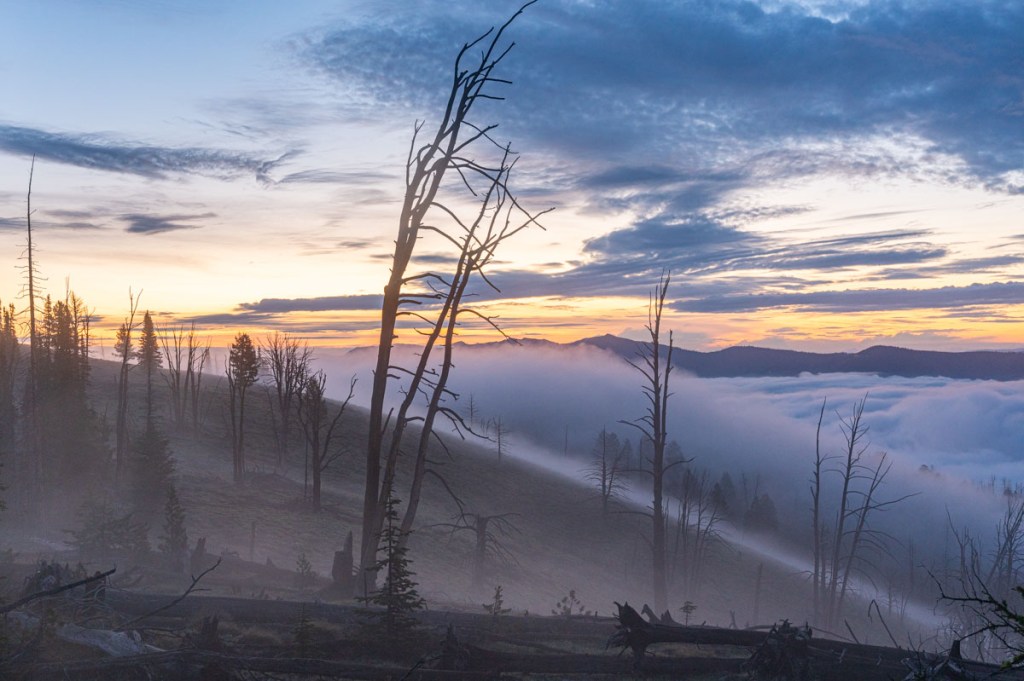 The mist ebed and flowed over the ridge.