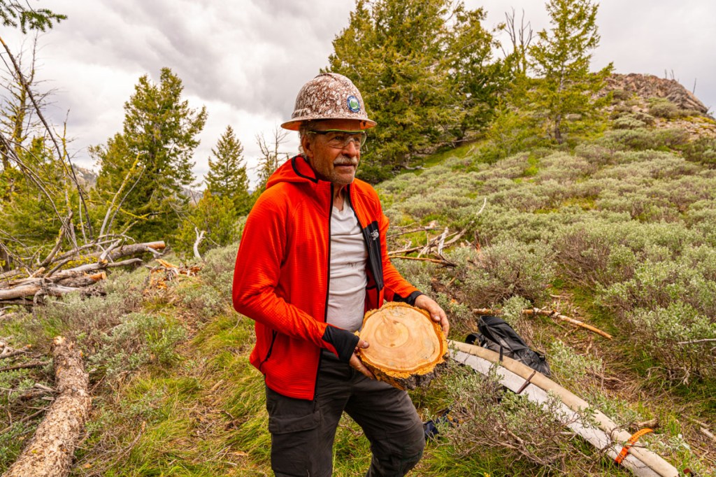 As we finished up the final trail work and headed back to camp, Craig wanted a souvenir so cut a section off this very cool log.