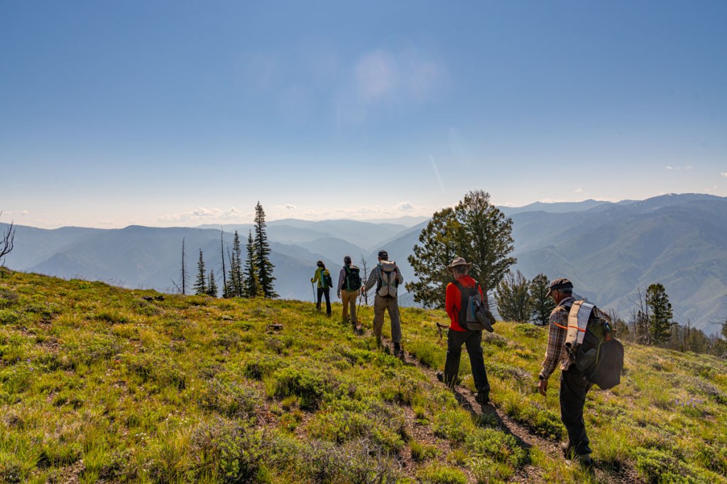 Today it was time to hike back to the airstrip at the Flying B Ranch. However, we were camped about 400 vertical feet below Bear Creek Point and I did not want to miss the opportunity to watch the sunrise on top of a peak. I woke up at about 5:00 am, it was cold and extremely hard to get out of my warm sleeping bag but when I crawled out of my tent, there was Brian, ready to go.