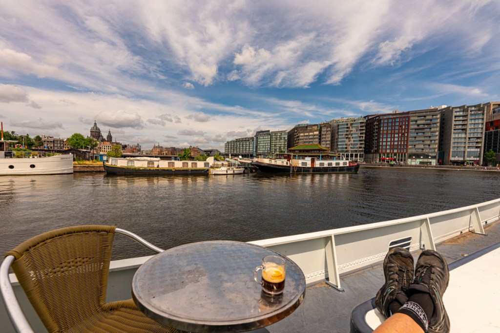 After a comfortable train ride from Rotterdam, it is time to chill on a house boat in Amsterdam.