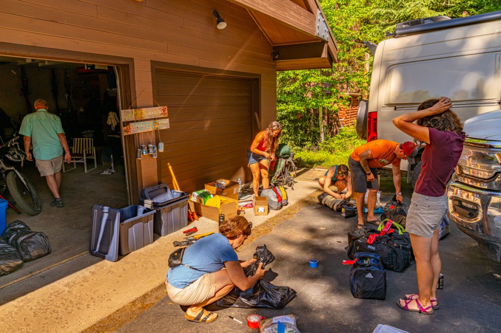 But first, rewind a bit to the day before where we needed to get our gear all set. Three weeks is a long time into the wilderness and we had to sort out two re-supplies which are to be brought in by pack team. On the right, loading up for the airport the next morning.