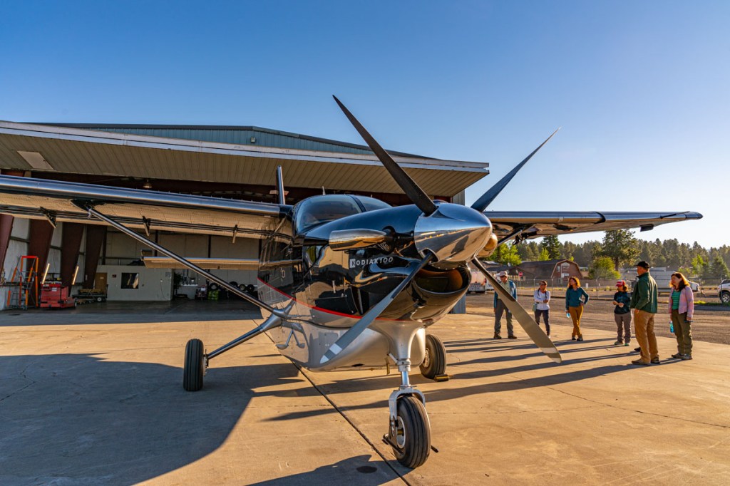 Our plane, the Kodiak, a fine machine manufactured in Sandpoint, Idaho. Thor gives us a safety briefing prior to boarding.