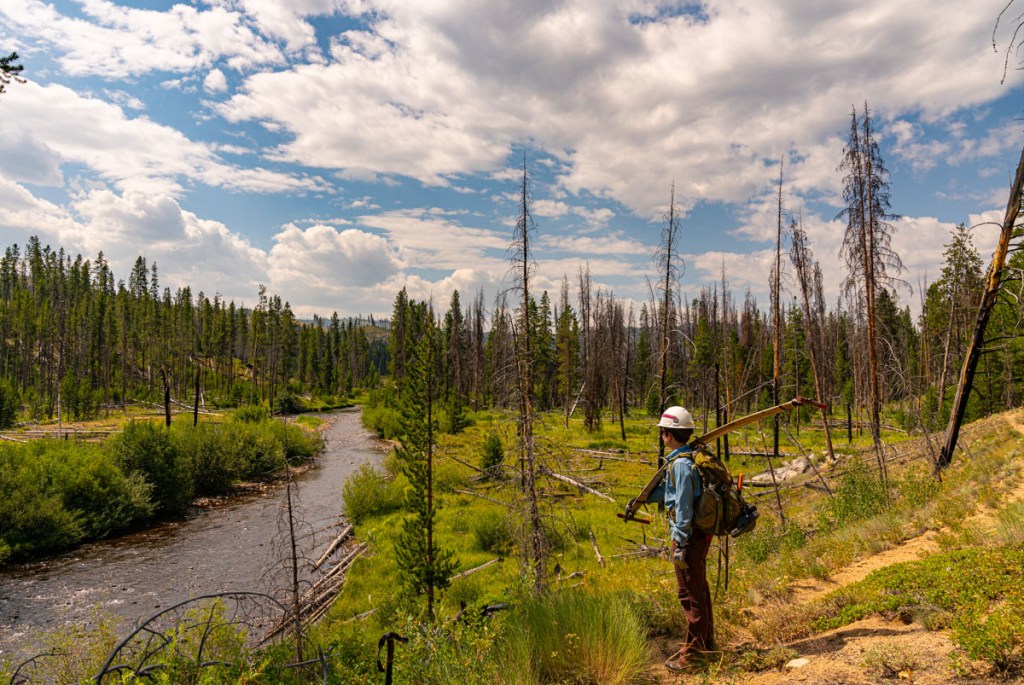 We set up a base camp there at the airstrip then worked the trail down Chamberlain Creek. Just a little busy work to pass the time. I told the crew the story about clearing this section of trail two years ago….. you can check that report out here.