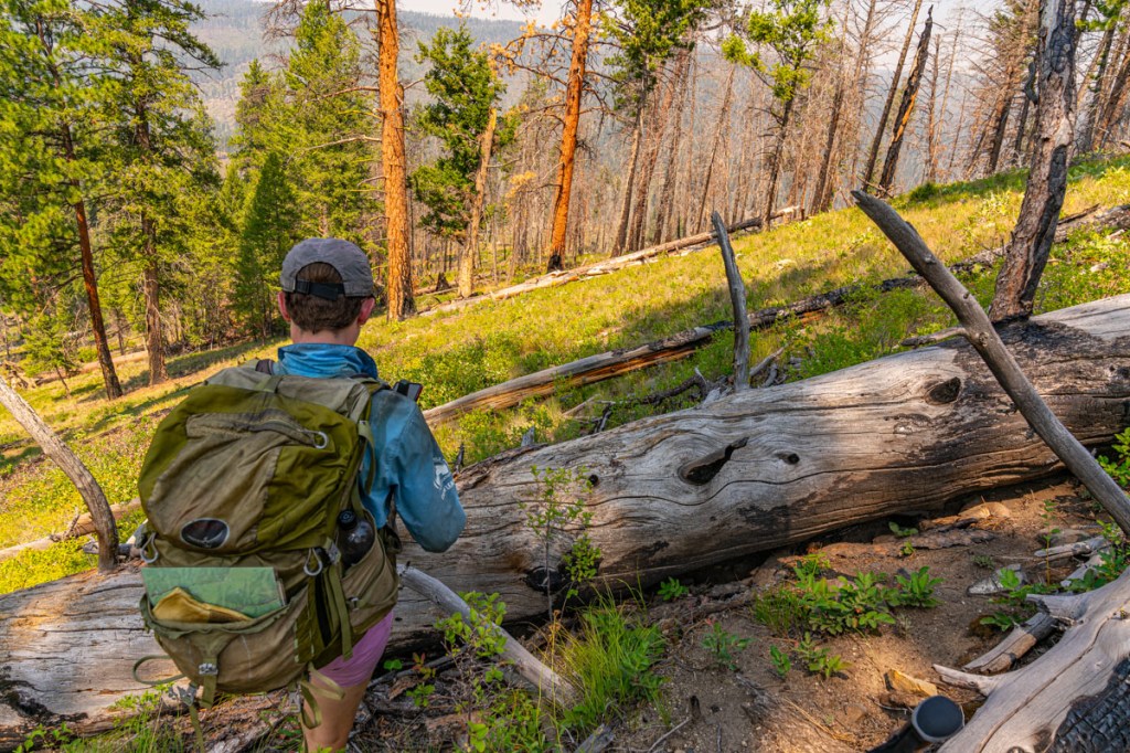 - Bump camp, take the off trail route to the ridge on “Dave’s Cutoff”, then drop into the Chamberlain Creek Trail. This required a little bushwhacking and downfall dancing but saved a bunch of elevation and still had the unknowns on the other side of the ridge.