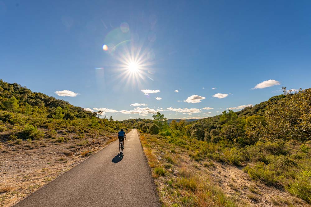 At Quissac, we jump onto the rail trail. This is low stress riding at its finest.