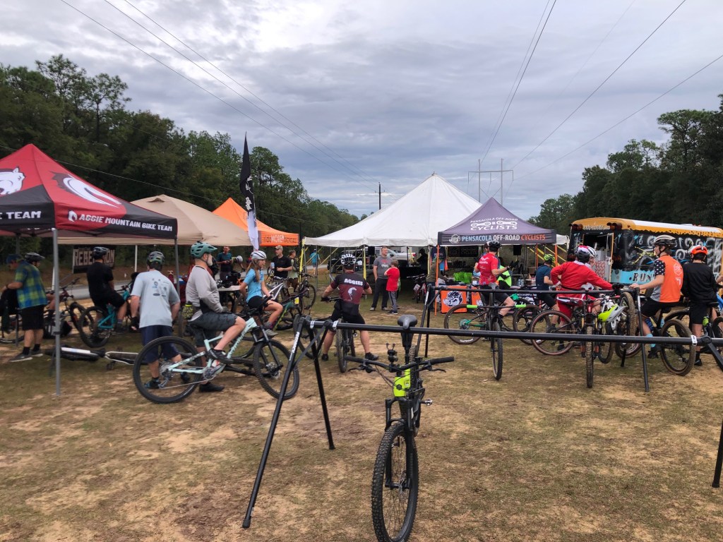 After doing a brisk road ride with the ride group from the local bike shop, I was looking for some dirt! The local mountain bike organization PORC (Pensacola Off Road Cyclists) were having a Toys for Tots fund raiser so I decided to check that out. WOW! Look mom! My people!