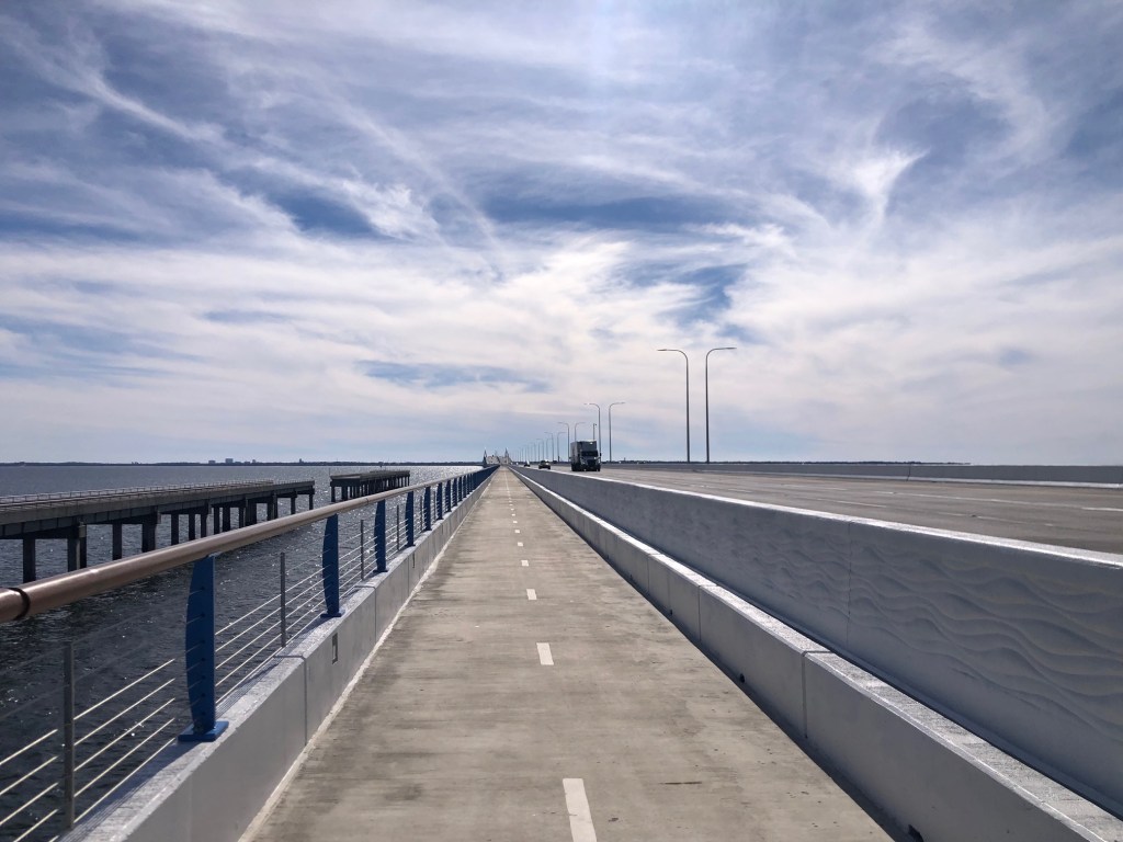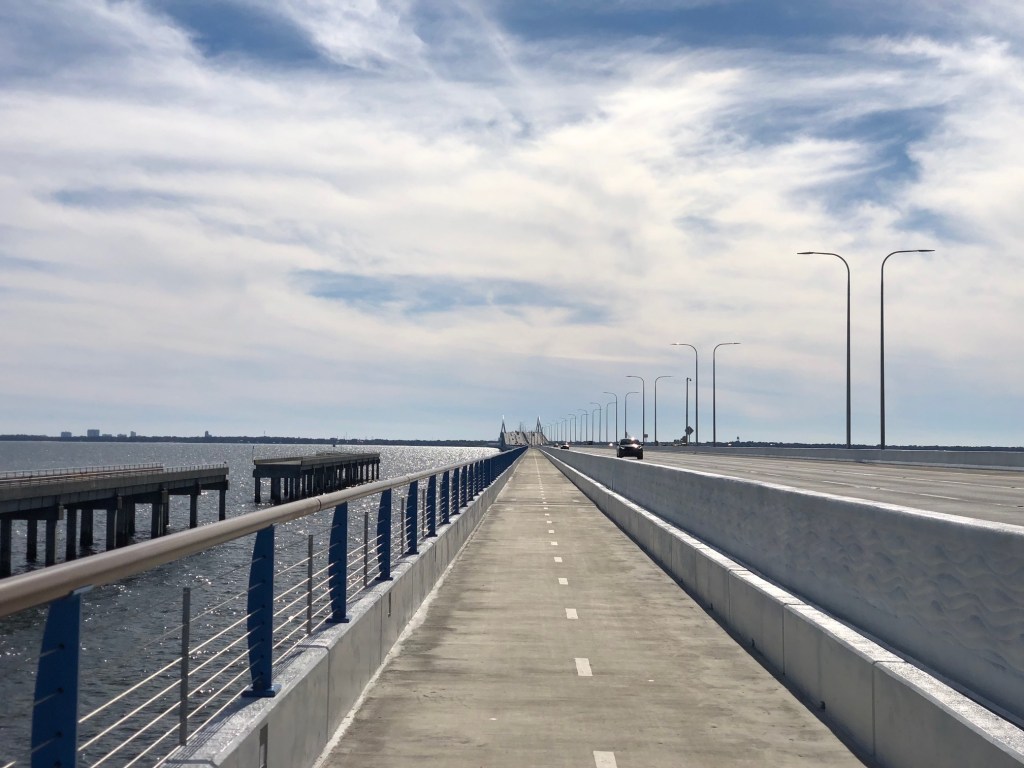 I decided to venture out onto the Pensacola Bay Bridge which is about 3 miles long (6 miles out and back) with a cool bike lane. It takes folks from the mainland to the barrier islands.