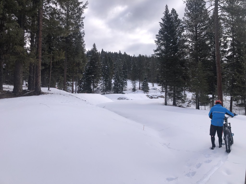 Today’s adventure involves rolling over to the base of Jughandle Mountain for a little snow bike adventure.