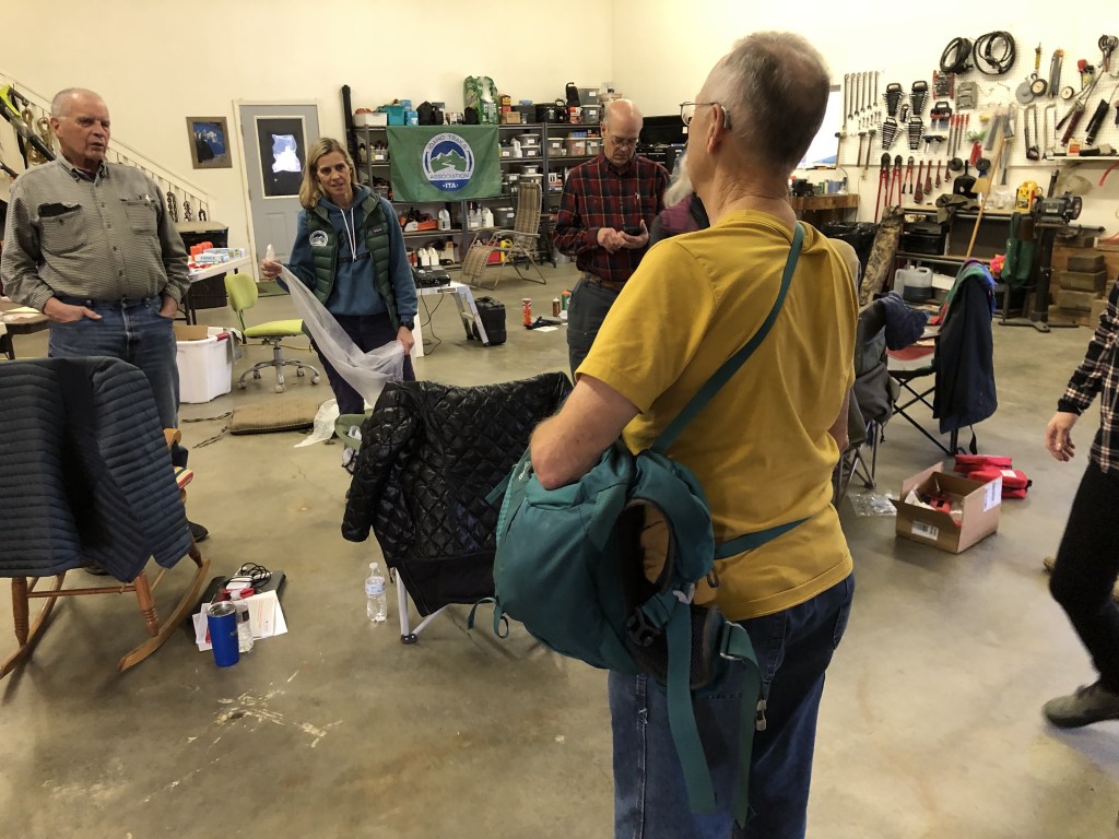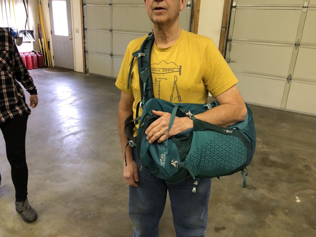 Debby, one of the class participants demonstrates how to convert your pack into a sling….. hummm that seems easier to me than the triangle bandage Brian! Extra bonus, the injured hiker can also carry some of their own gear!