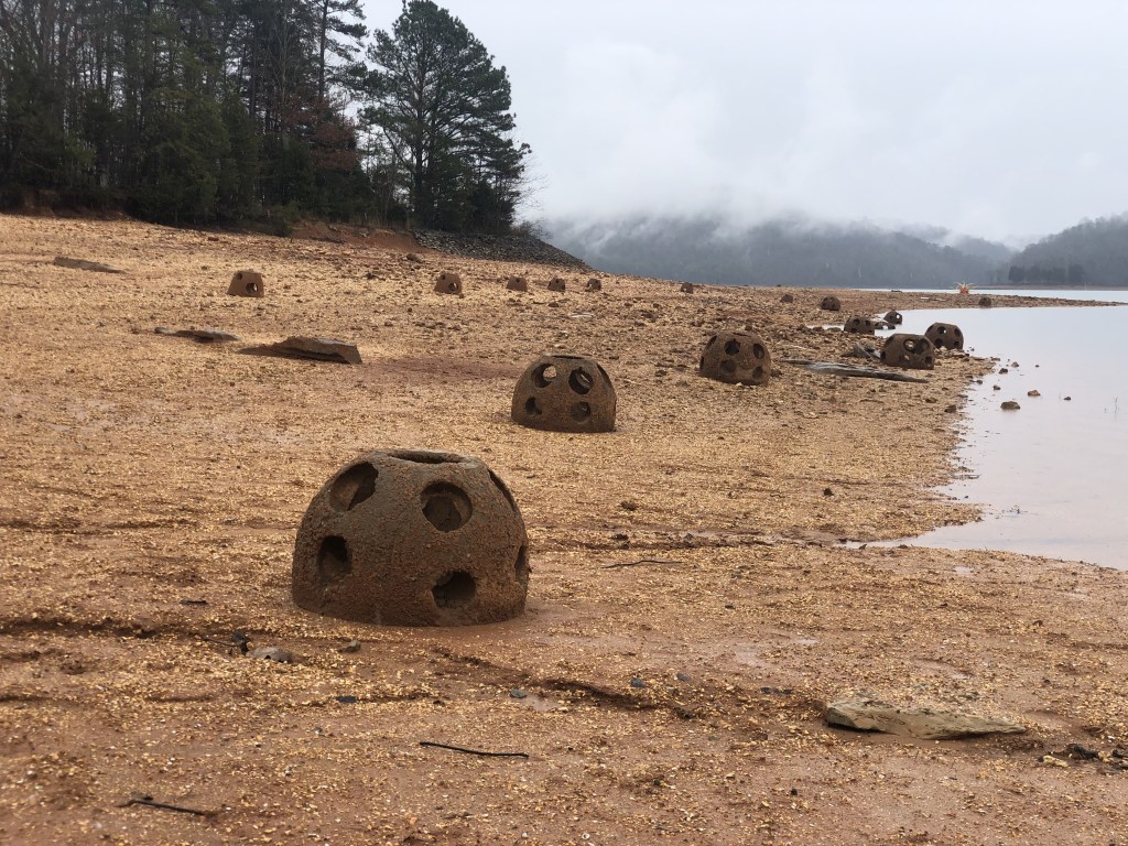 We came up these mysterious orbs…. later we discovered that they were some sort of artificial fish habitat that also double up as boat propeller dingers.