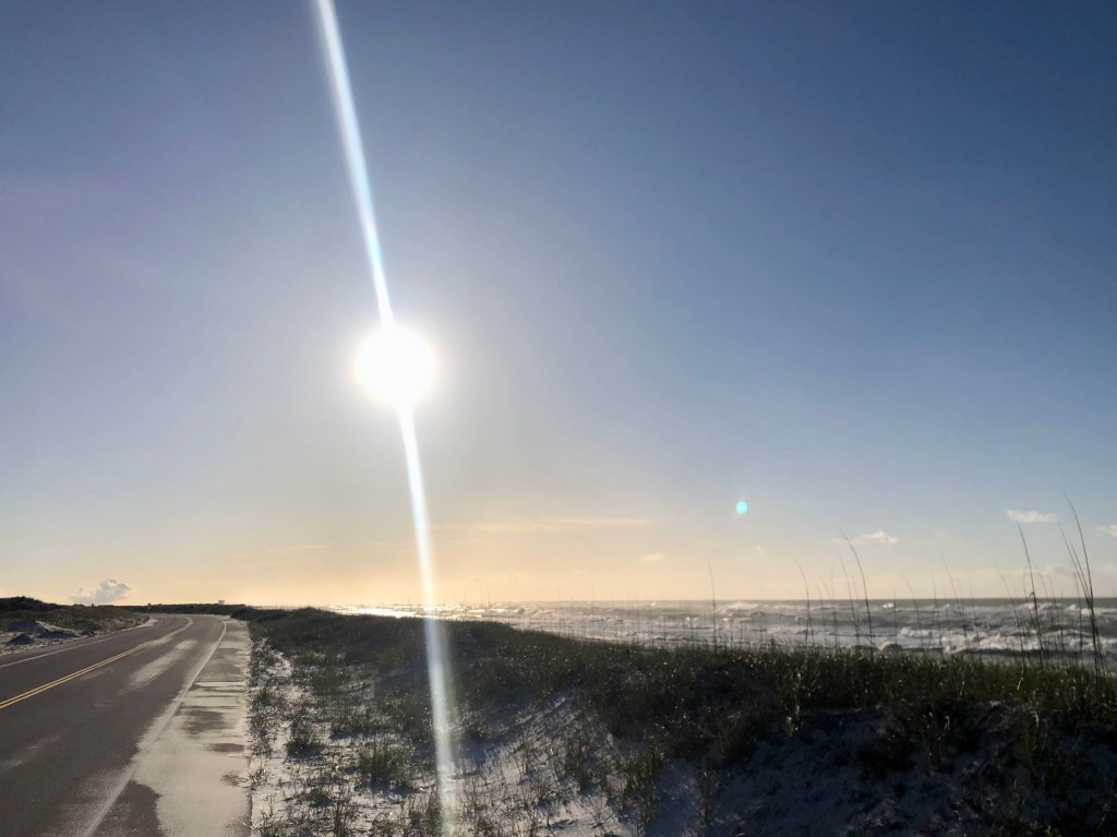 Thursday is my weekly loop ride around the sound with the Loopers. We had a massive tail wind along the beach and I was dropped early so decided to take a picture or two before chasing. This image does not show the incredible beautiful of this day or area but what it does revile is a crack in my iPhone camera lens….. At least I was able to salvage one image, kind of…