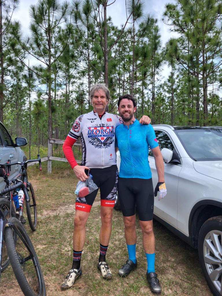 “Floridaman Mike” and I chat it up during a rare easy moment along the ride. All of my Idaho friends probably noted that I have been flying the George’s flag all season down here.