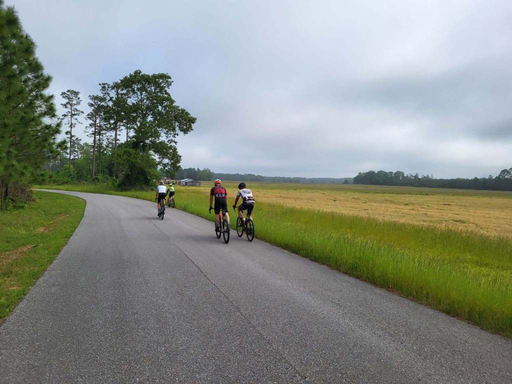 Yesterday I was out for my weekly gravel grind with the Blackwater Gravel Grinders. As usual, the pace was hot for me so I was mostly hanging on but luckily Derek shot some photos and generously allowed me to post his pictures, thank you Derek! As I am headed back north soon, this is my last ride for the season with my gravel crew. It has been a wonderful winter down here riding the rolling hills of Northwest Florida. It is really a hidden paradise for the gravely inclined. It was fun watching the seasons change from December when we started to mid April. Yesterday, temperatures were in the 80s and the humidity was high. Obviously it is time to head for the mountains.