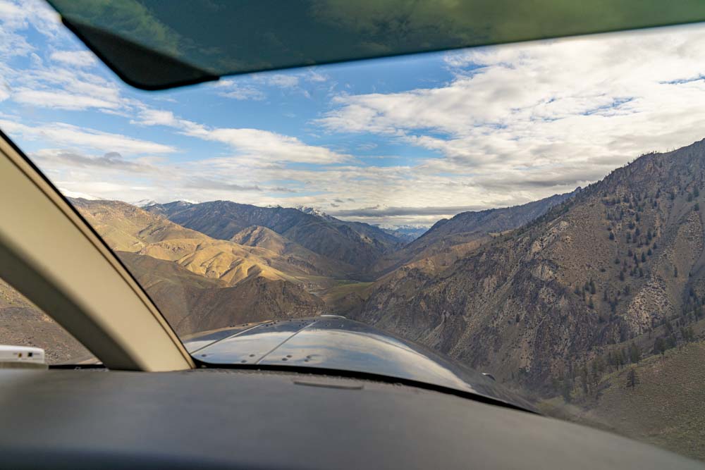 It was a beautiful day to fly, the Lick Creek Mountain Range still holds a bunch of snow up high. After about 30 minutes at altitude, we descend into the Flying B Ranch along the Middle Fork of the Salmon River.