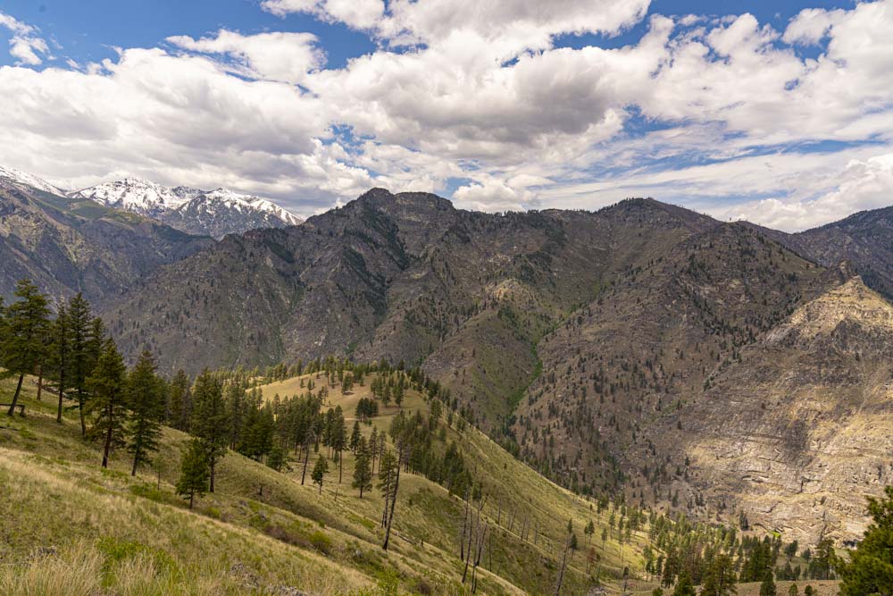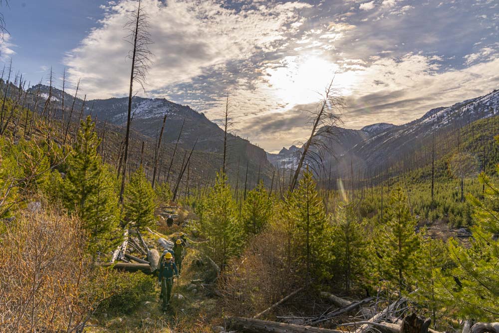 Carl and Cody hiking down below with the Big Creek – Middle Fork Confluence in the background. Hard to tell here but both were flowing considerably higher that three days ago.