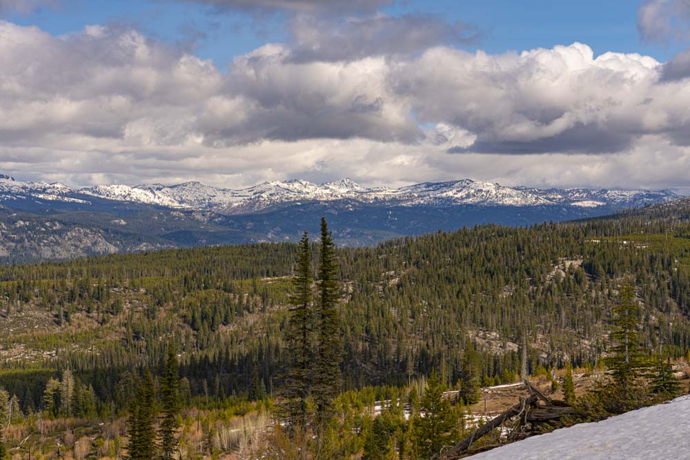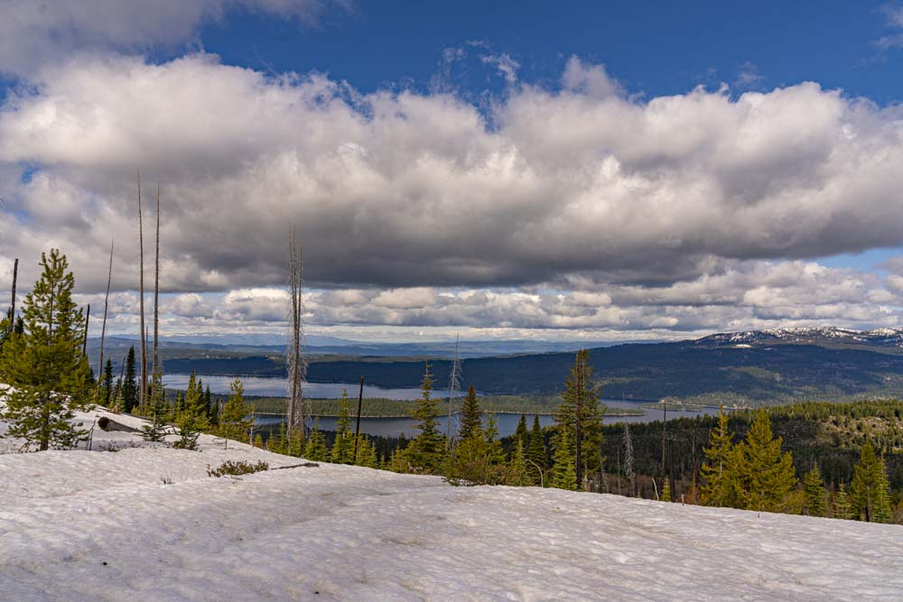 I’m still trying to catch up on posting adventures from last week. I had decided to try an assault on Clair Peak from McCall, something I had never tried before. I departed the house on a mountain bike and headed up the Crestline Trail. My goal, get close enough by mountain bike for a short hike to the summit. About the 7000 foot level, the trail closed in with snow and I was unable to skirt around.