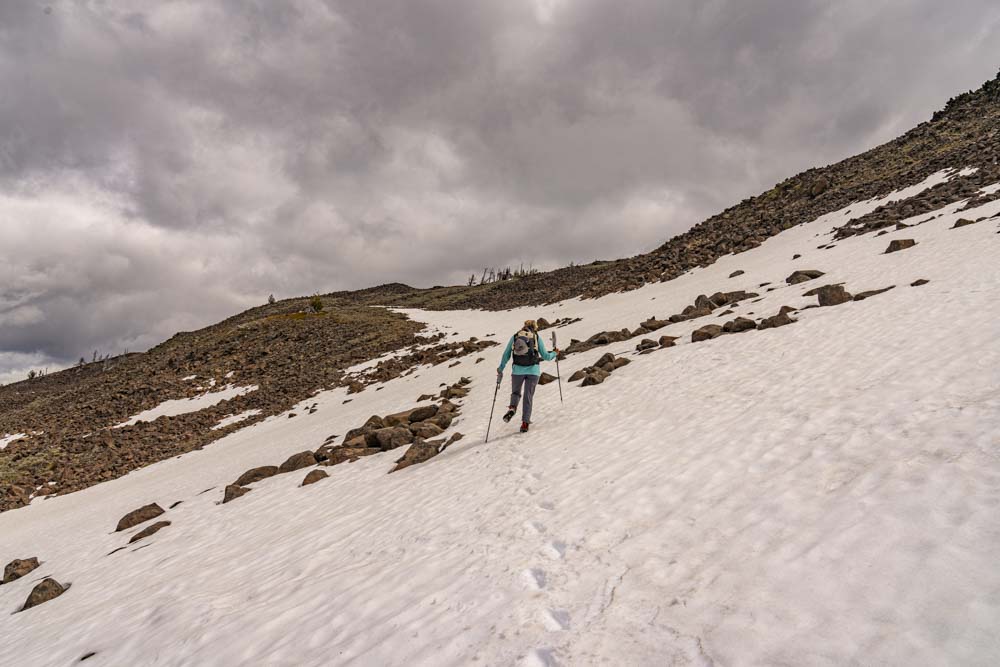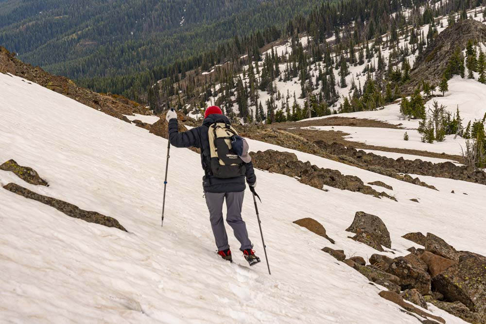 It wasn’t long before we hit snow. We were climbing a south face so certainly we would have snow on the northern aspects.