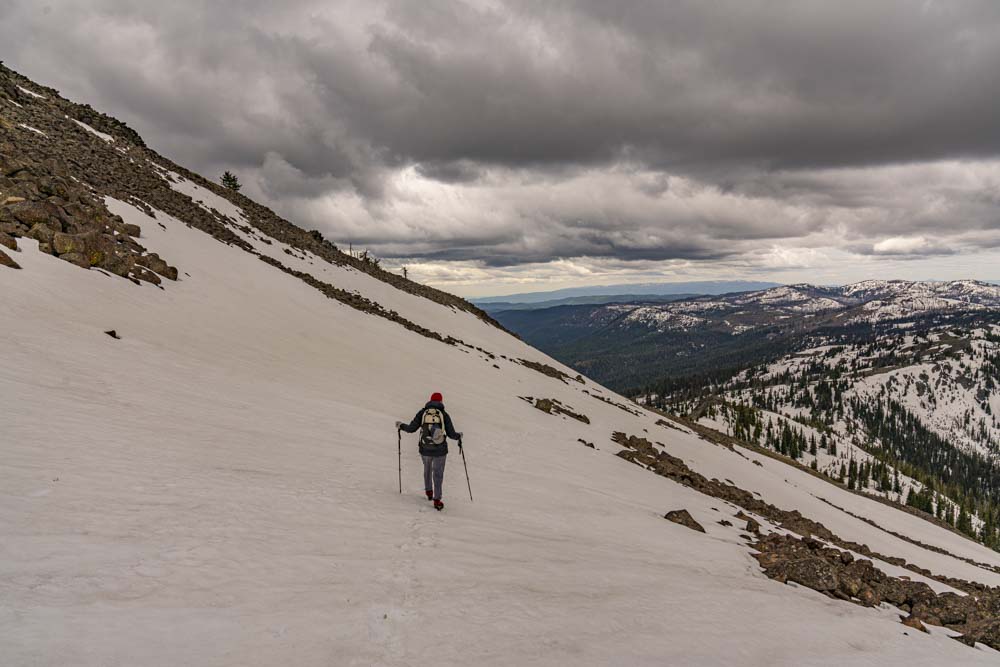 We worked up the southern side of the ridge to avoid the steepest sections of the snow field.