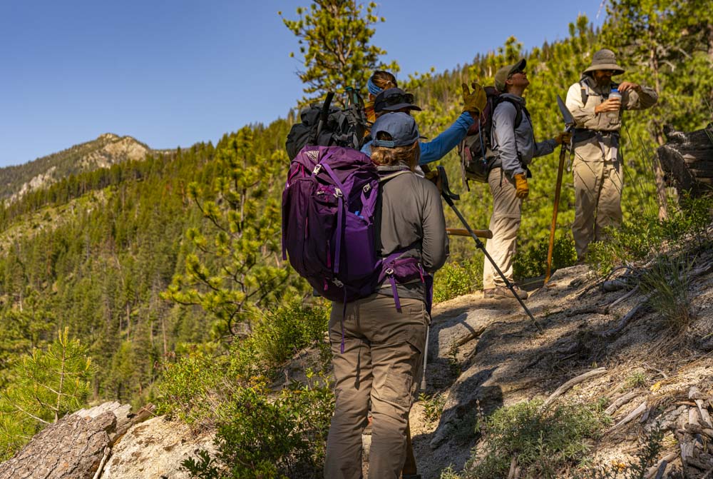 After hiking up most of the way to our base camp, we again passed the pack team coming back out. Molly, one of the Packers happens to be a Forest Service Archaeologist. The team stopped for a break and Molly gave us a talk on the history of the area. What a treat! We finished the last half mile trek to our camp site and settled in for the upcoming work days.