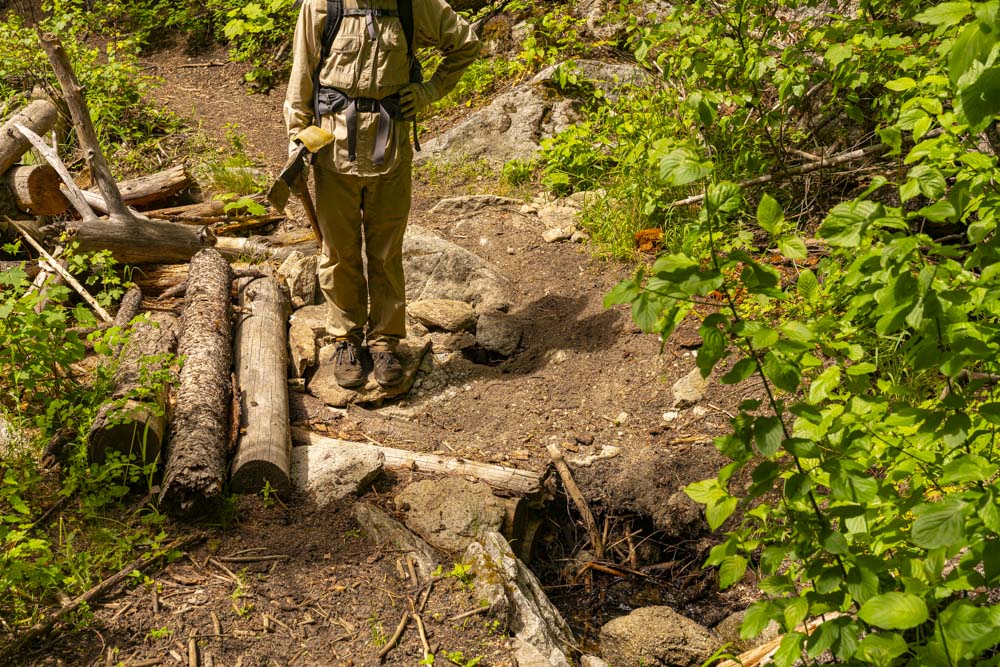 Wes trims this tripper which was laying in an awkward position in a gully.
