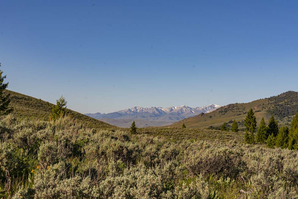 As we climb out of Sawmill Canyon, the high peaks of the Lost River Range start peeking out.