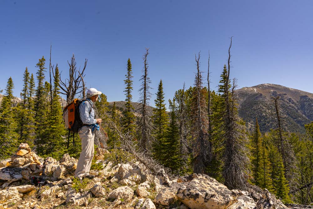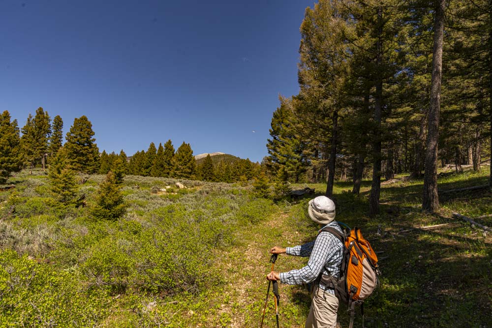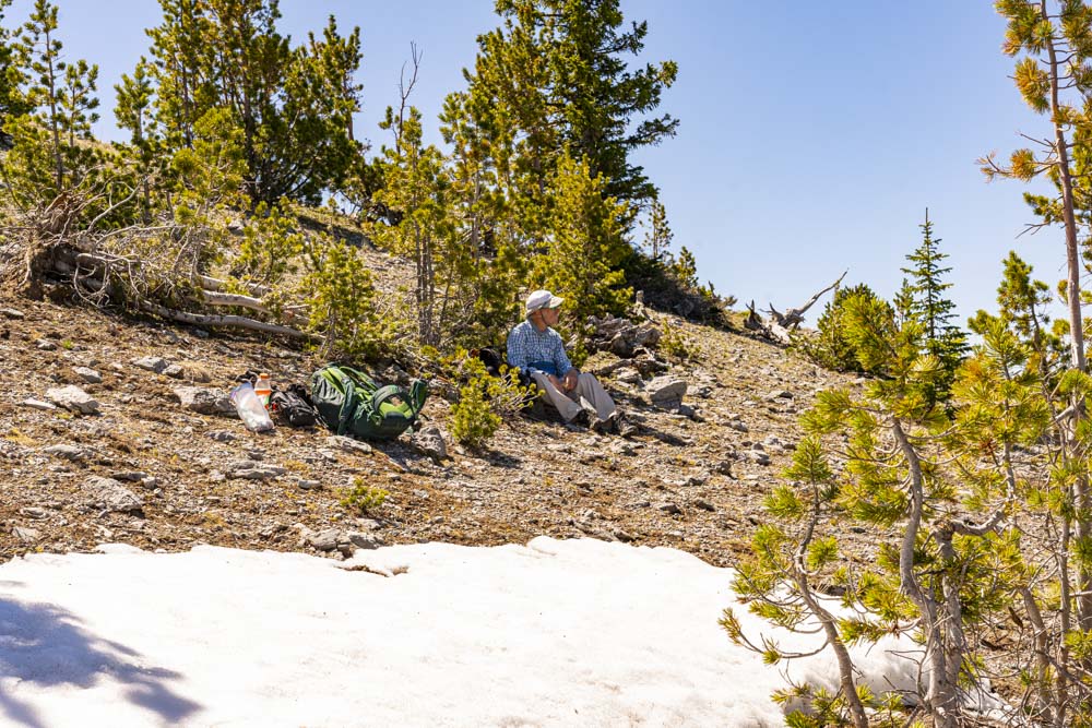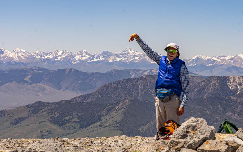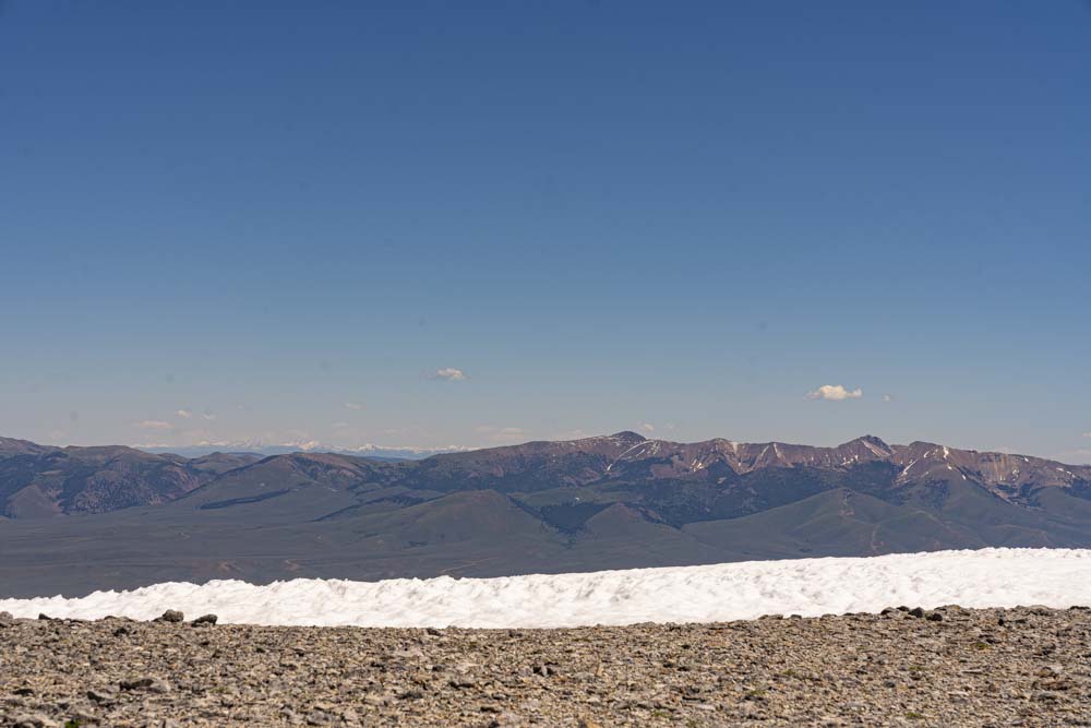 On the flank of Peak 9188, we marveled at the clarity of the skies. On the far right, Mount Borah peaks over Bear Mountain. FYI, Mount Borah is the highest peak in Idaho at well over 12,000 feet.