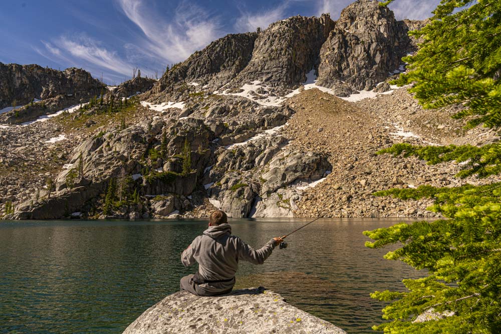 After chilling for a while and picking off a few ticks, we wondered up over the hill to Upper Kathy’s Lake. This shot back down on Lower Kathy’s is quite spectacular.