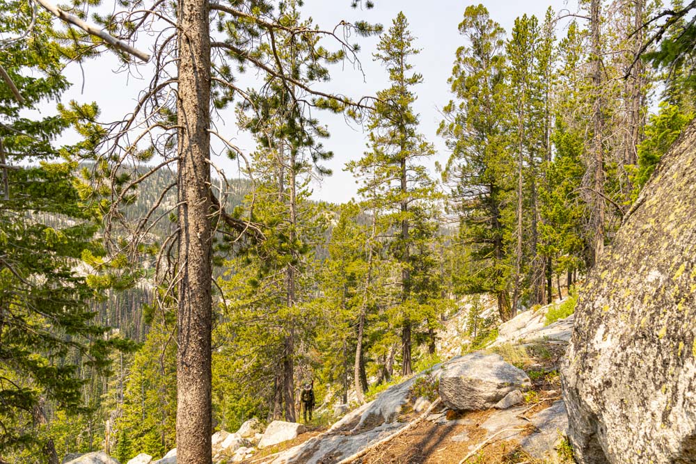 The trail to access the lake soon pretty much disappears and the adventure begins. Dan and I spent about a decade or so (pre Davefaitlemonde) doing crazy adventure mountain bike rides in the backcountry of Idaho. We have both slowed down a little but defiantly enjoy getting out where few people go…… albeit at a much slower pace.