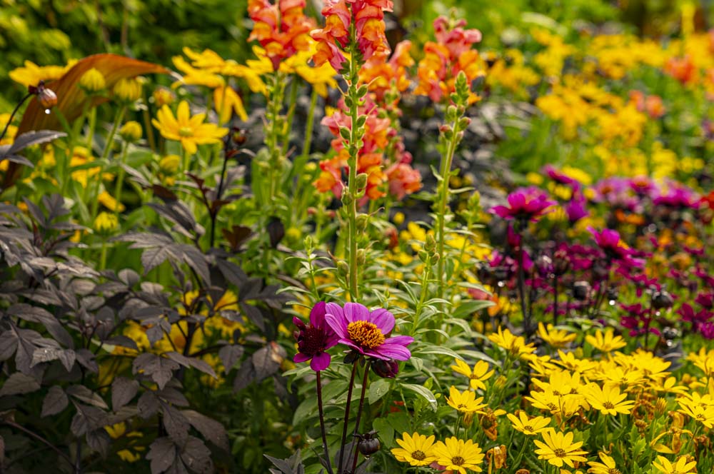 Flower beds everywhere.