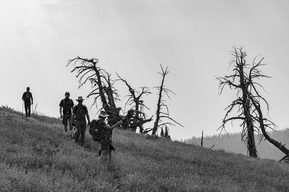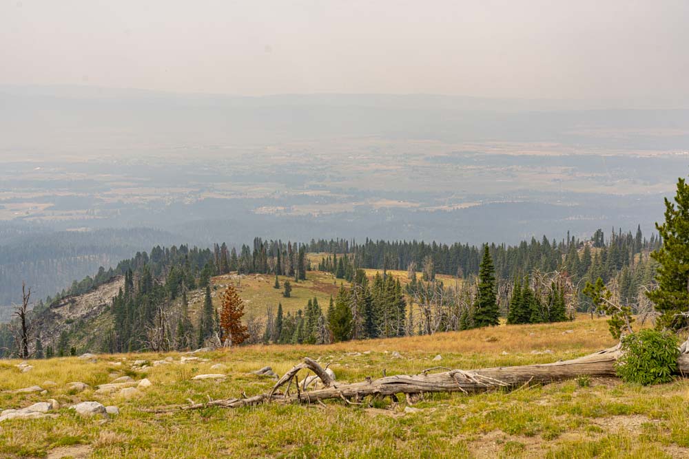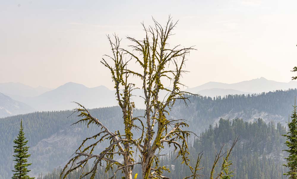 As we approached the ridge, the old dead snags caught my eye. Notice the smoke? Yeah we have a few fires in the region.