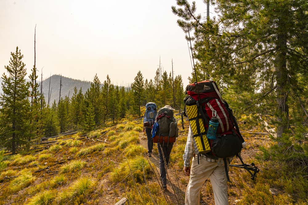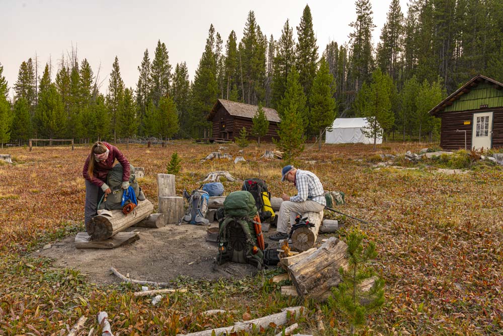 Joining Mariel and I on this trip were Brian and Jenny. After debarking the plane, we hung airport bags and prepped for our 9 mile trek deep into the wilderness. The Cold Meadows USFS Guard Station makes for a great staging area.