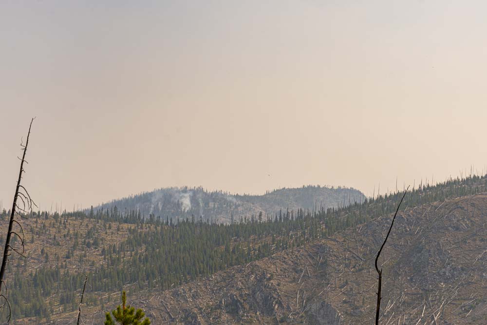 I had been tracking the Farrow Fire for the last month. According to available on line resources, the fire had been smoldering in an old burn since August 5th. Despite feeing confident that it was not threat, it was still good to get eyes on it. Camping within about 3 miles of a forest fires is not for everyone. However, fire and smoke is part of the eco system in the Frank. If you can’t handle that, you shouldn’t be here!