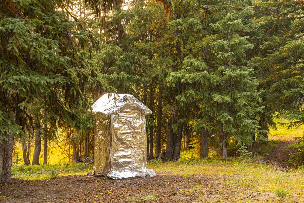 At Coyote Springs we found the phone booth wrapped. I guess we won’t be making any calls to home. The forest service wraps historical structures within the Frank Church Wilderness and it was a stark reminder that there was a fire just two ridges over. Check out my past trip report coyote-springs-expedition-episode-1-frank-church-wilderness-idaho for a photo of the un-wrapped booth and also a link to the history. That report was from our last trip here when the seeds of this expedition were planted.