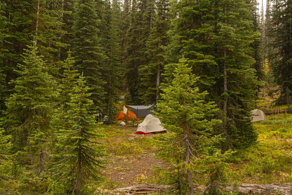It wasn’t until we were actually on the lake that we found a flat spot to set up camp. As you can see, the skies once again threatened and we spent the next few minutes doing a speed setup of camp.