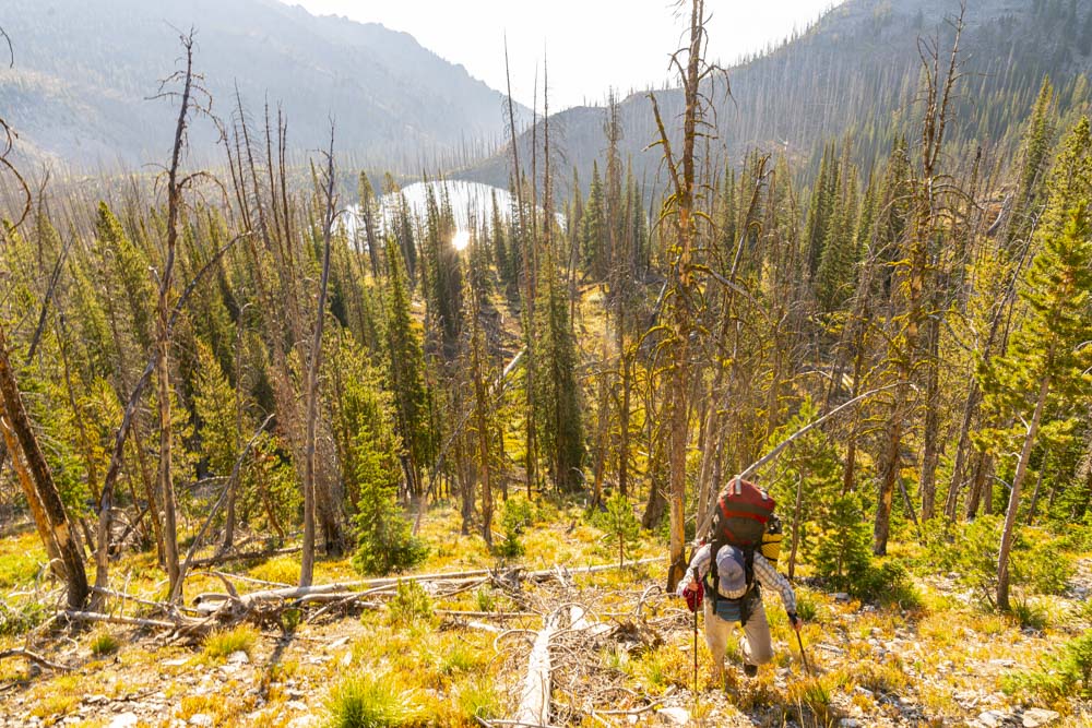 On the morning of our 6th day, we needed to start our journey back to the Cold Meadows Airstrip. This was going to take a 2 day backpack over about 18 miles.