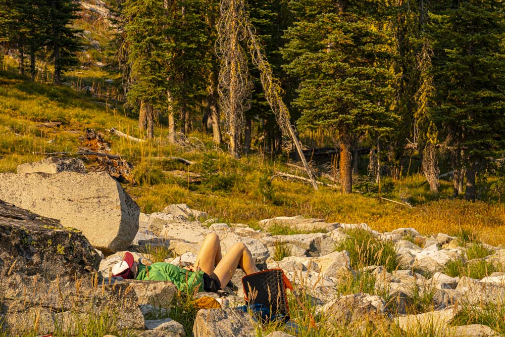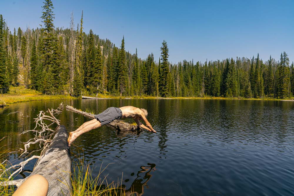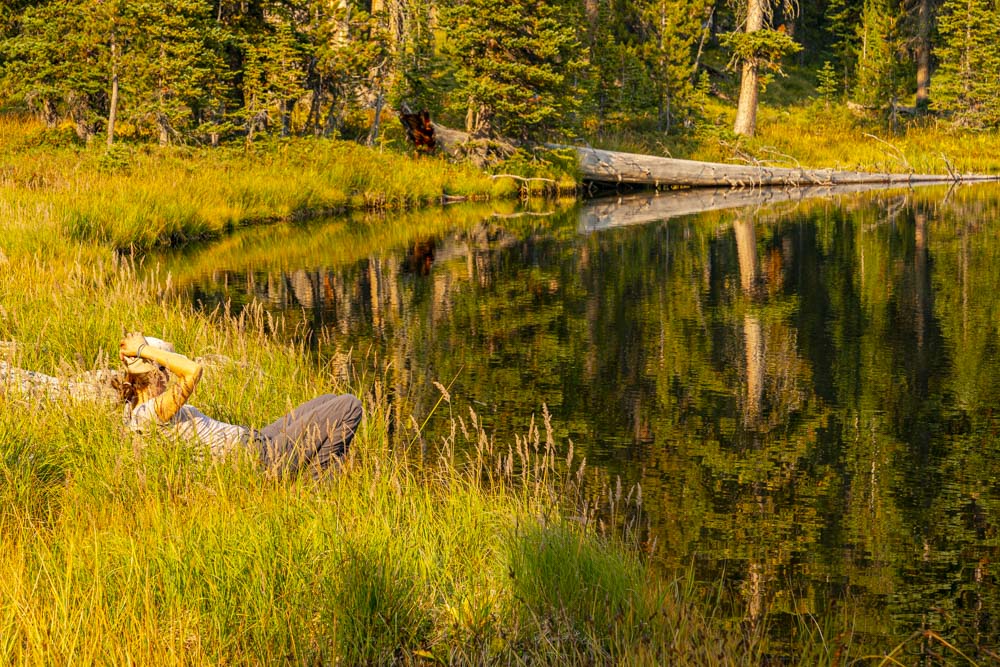 After a few hours, we arrived at Papoose Lake where we established camp. We had several hours to relax and enjoy lake things…. like swimming.