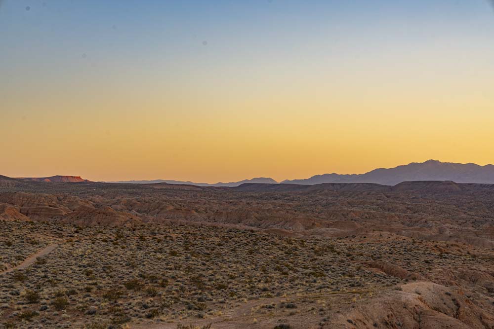 Looking north into the desert abyss, you can just see the sunshine on one of the mesa walls.
