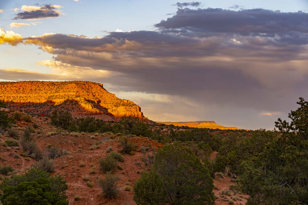 The last rays of sunshine on the mesa tops.