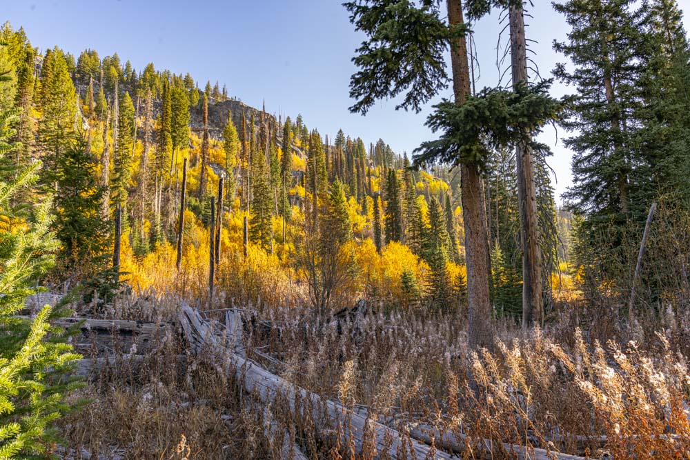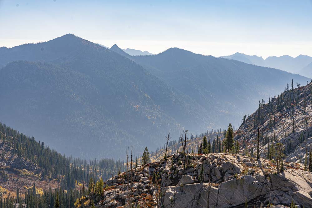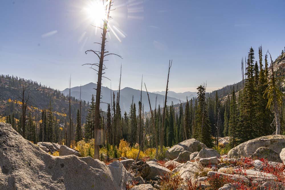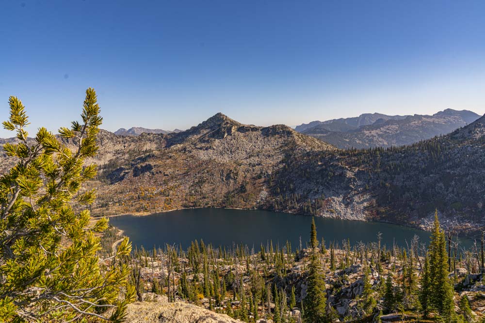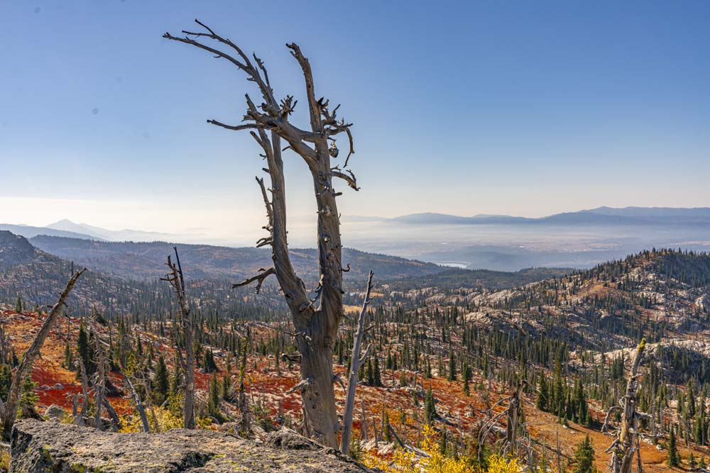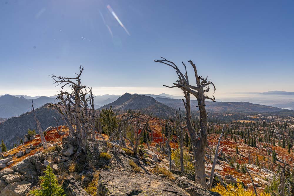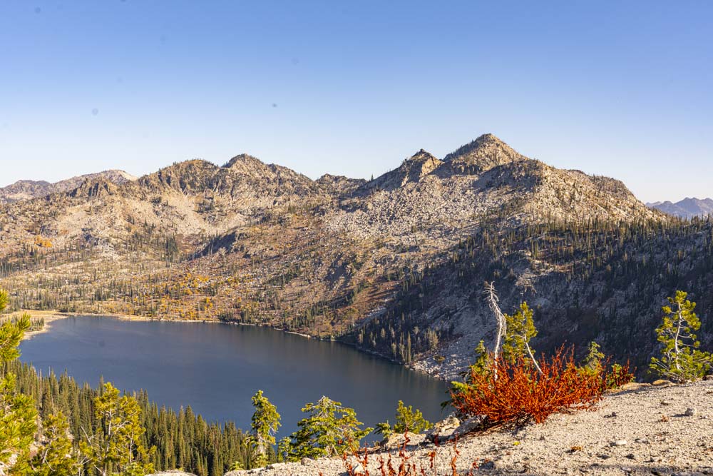 Box Lake is below and is one of those sacrificial destinations in the Payette National Forest. As my followers know, I’m not into crowds so I haven’t been there for almost 25 years. On this fall weekday, it was time to return! Also, I have completely surrounded Box Lake this year with previous visits to Beaverdam Peak (image right) and Rain Peak (image left). You can see those trip reports here and here.