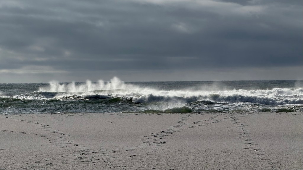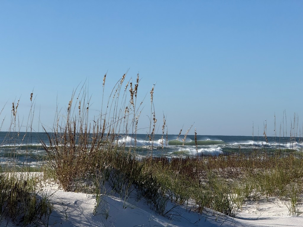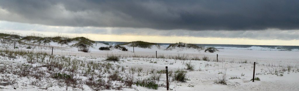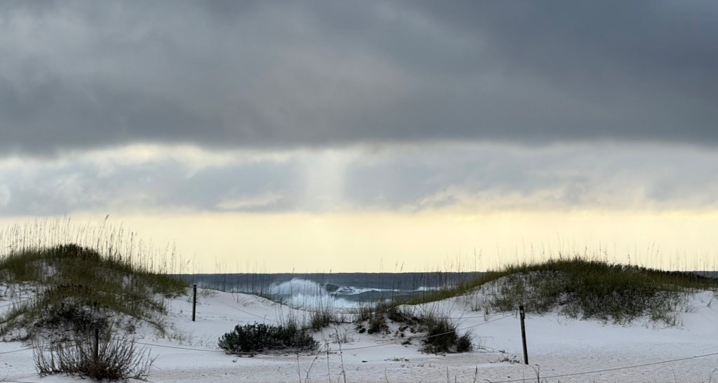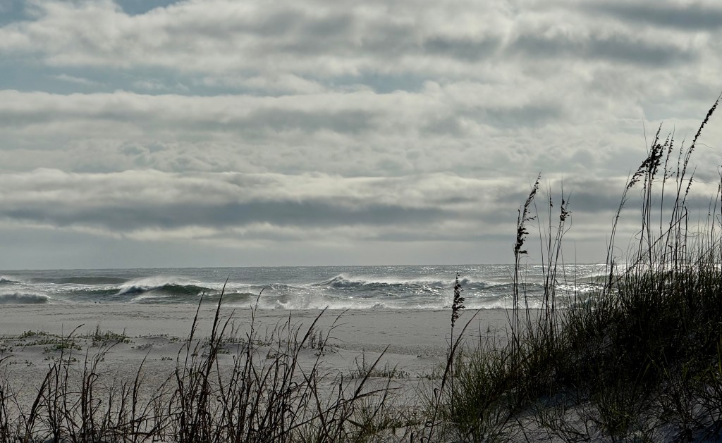Beach grasses and an angry Gulf.