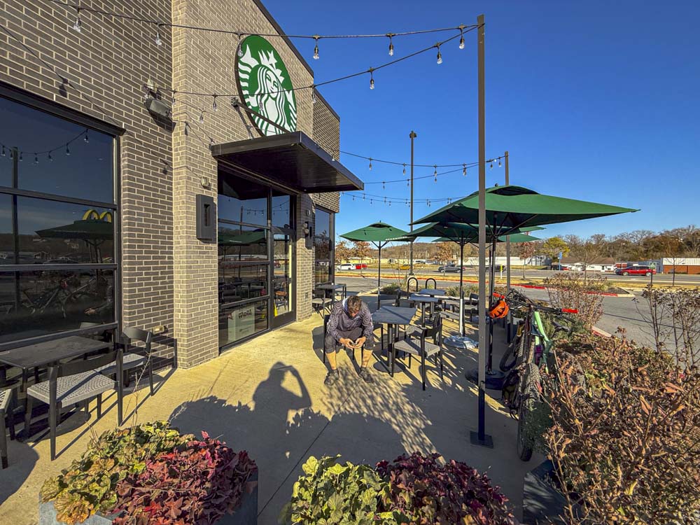Finally, after almost 30 miles of single track, Rich and I hit the coffee shop for a boost to make it the 1.5 miles back to camp.