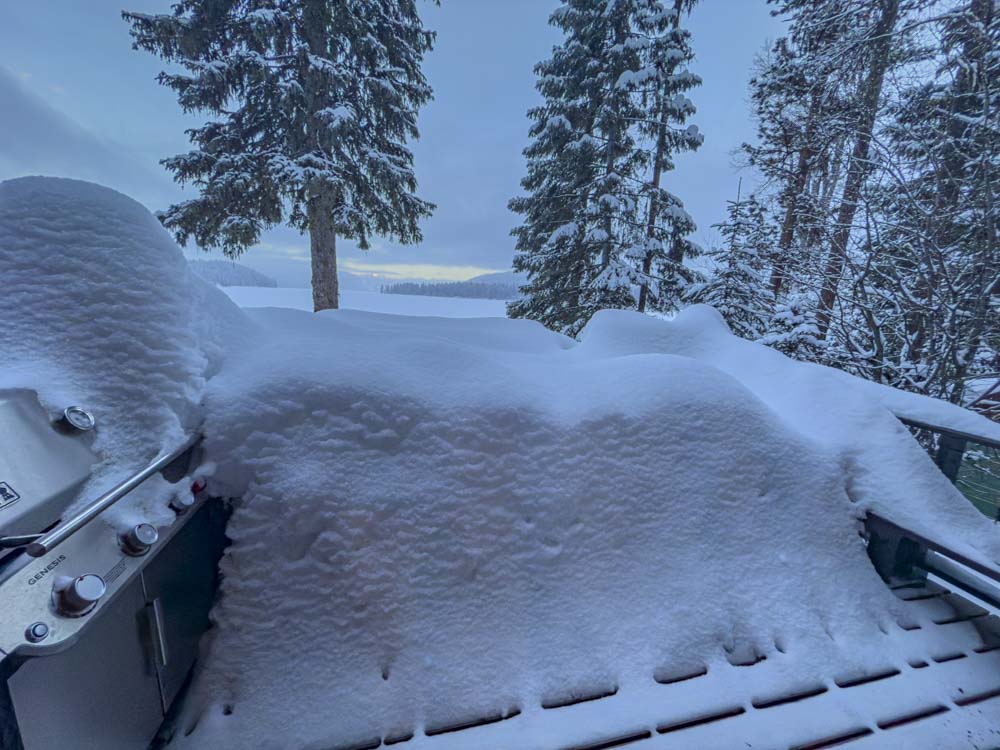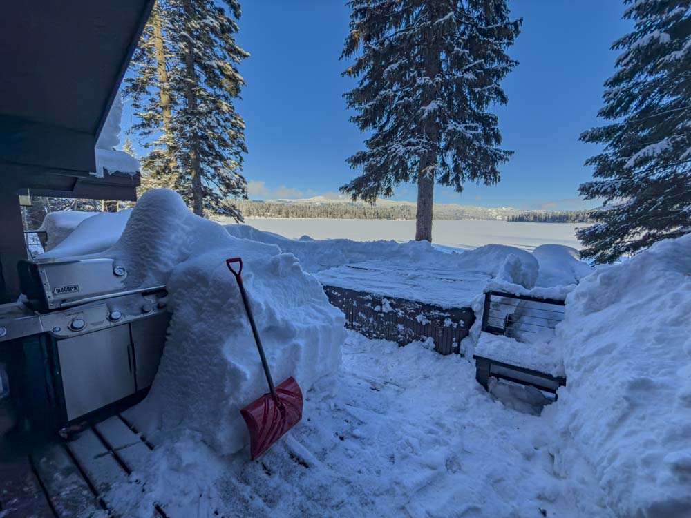 The BBQ is now accessible so it is time to get snow off the roof. For my Florida buddies, that tool leaning on the grill is a “Roof Rake”.