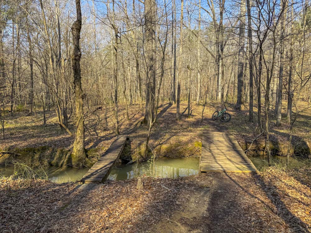 This is the biggest park in Alabama and it is quite big. Besides an extensive trail system it has a golf course, BMX track, fishing lake, beach, and cabins.