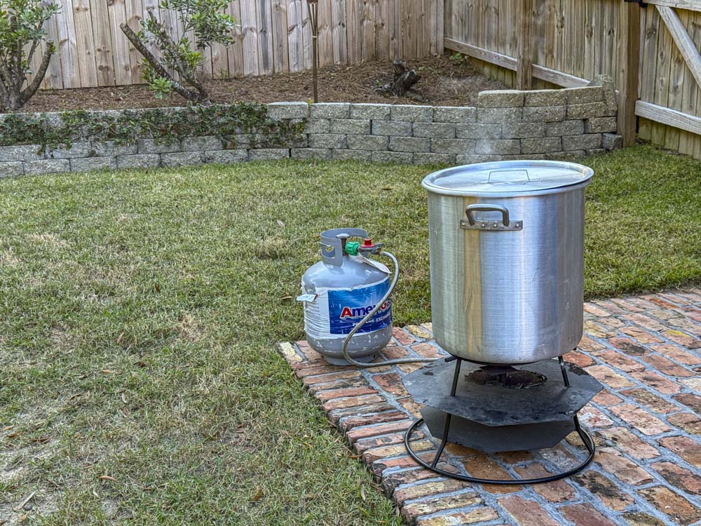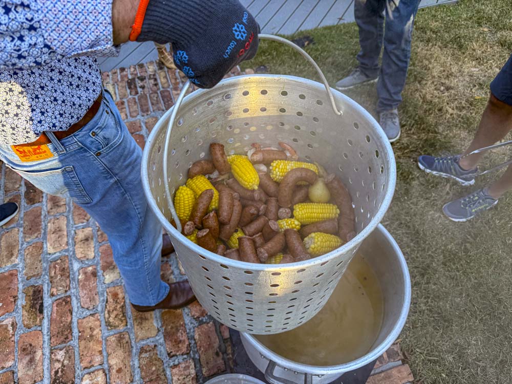 Here in the South, folks do things a little different. In this case, it’s a shrimp boil. Jill and Derek (our neighbor) share the same birthday and one needs no bigger excuse to have a hoe-down.