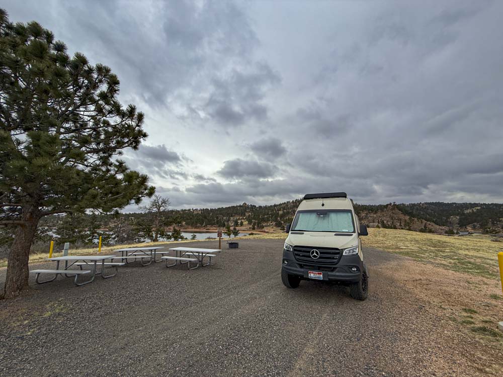 After a super long day, we arrived at Kurt Gouty State Park in Wyoming. I picked a bit of a crappy camp spot. It was camp site number 2.