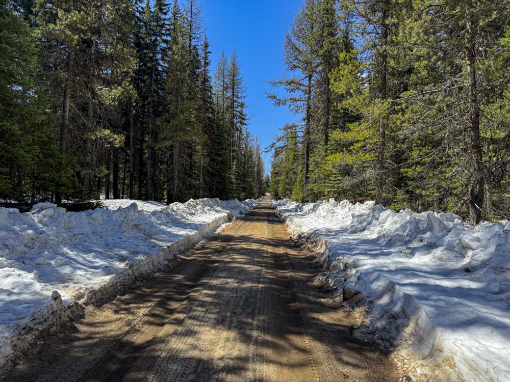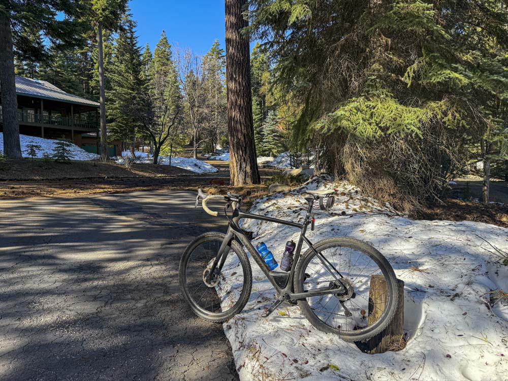 Next day I was back on the gravel bike exploring some of the local roads. On easy rides I like to stroll up to the snow line on some of the mountain roads to see how the snow is melting back. Lick Creek Road….. I made it about 100 feet past the end of the snow plowed area.