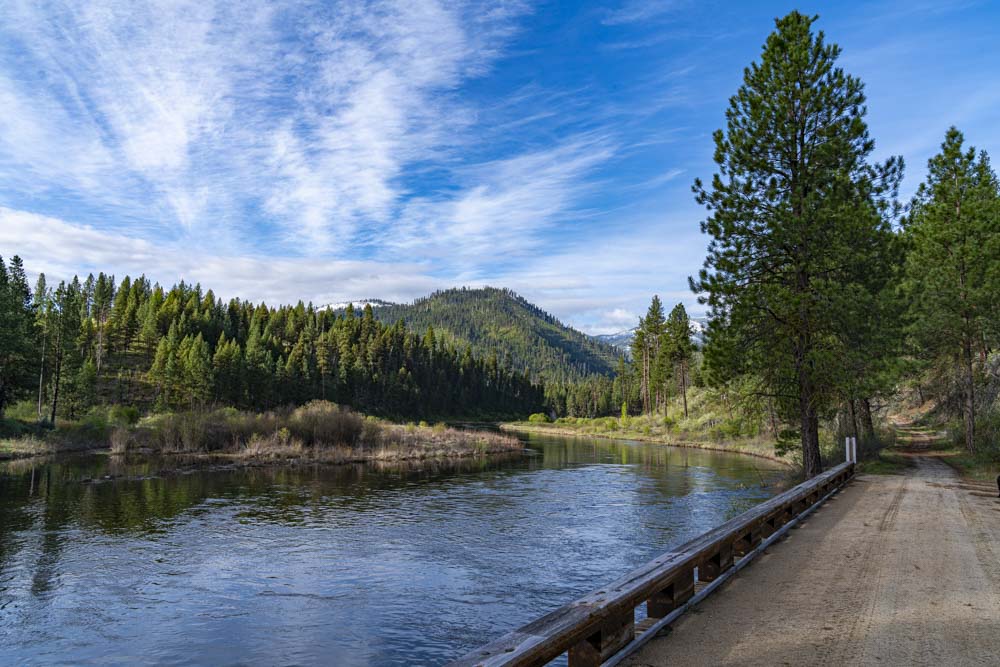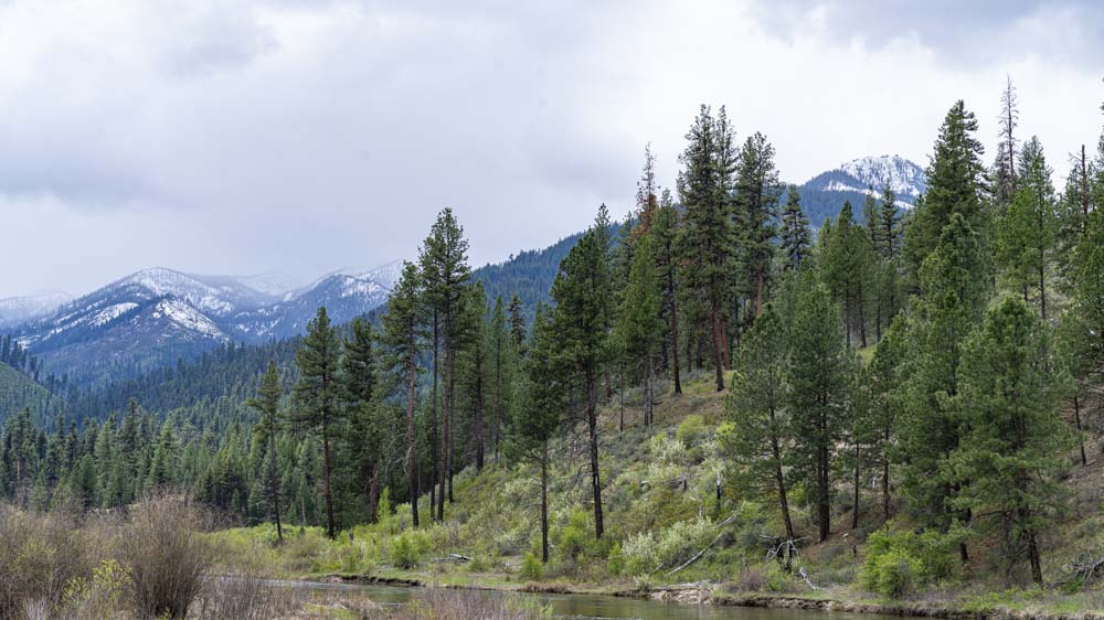As we cross back over the South Fork on our way back to camp the snow showers start back up in the high country.
