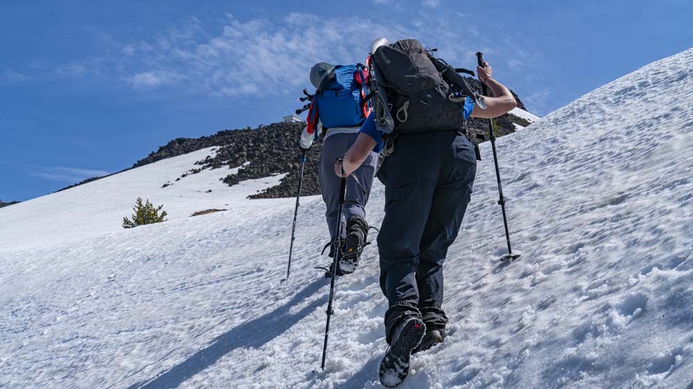 Luckily, the snow conditions were perfect for snow climbing so we mostly used the snow shoes for extra training. Coco skipped along as we trudged our way up.